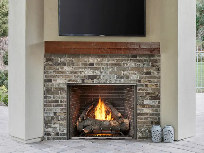 Create a space that brings family and friends together with the Outdoor Lifestyles® Courtyard gas fireplace. It’s the easy way to expand your livable area and extend the outdoor season with cozy warmth in a nostalgic look.